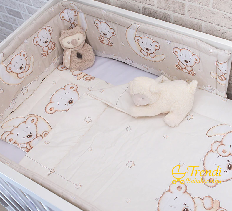 Három részes (takaró + párna + fejvédő) mosható ágynemű szett, színes vidám mintákkal, az anyukák és a kisbabák legnagyobb örömére. A fej óvja a már fejét emelgetni tudó babát védő az ütköző való ütközéstől, mely kötők segítségével erősít a kiságyhoz. Az ágyneművel azonos mintájú anyagból elérhető babafészek, és kókuszpólya is.