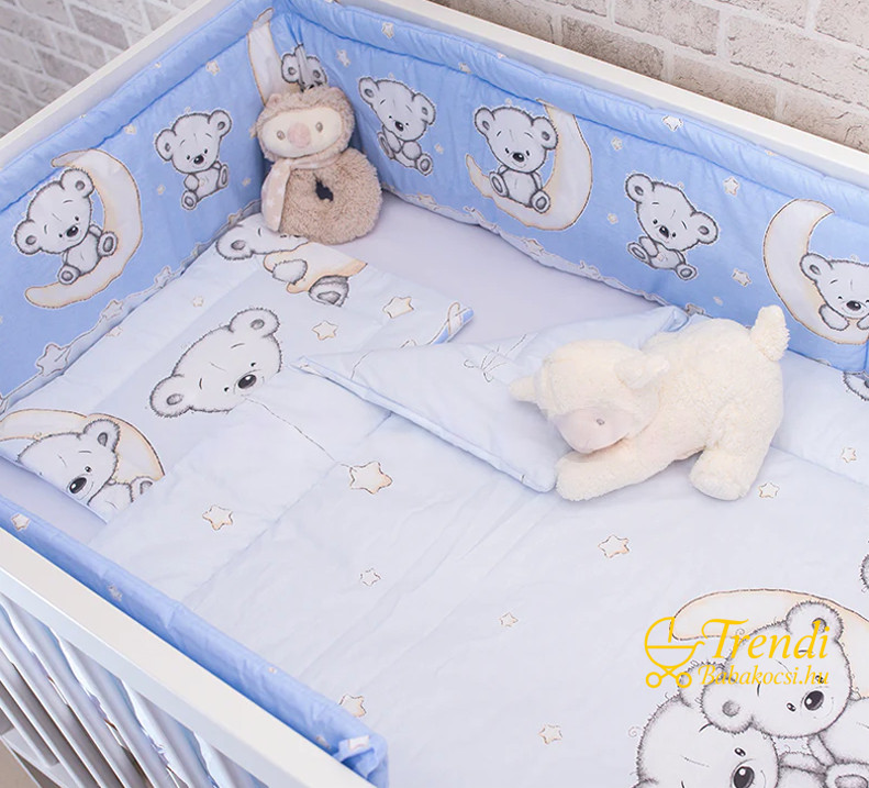 3 részes babaágynemű szett - Maci és hold - Kék