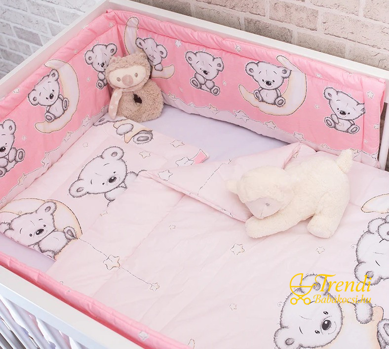 3 részes babaágynemű szett - Maci és hold - Rózsaszín