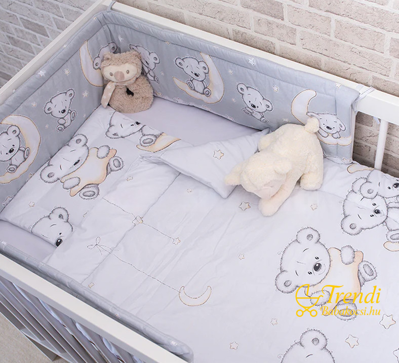 3 részes babaágynemű szett - Maci és hold - Szürke