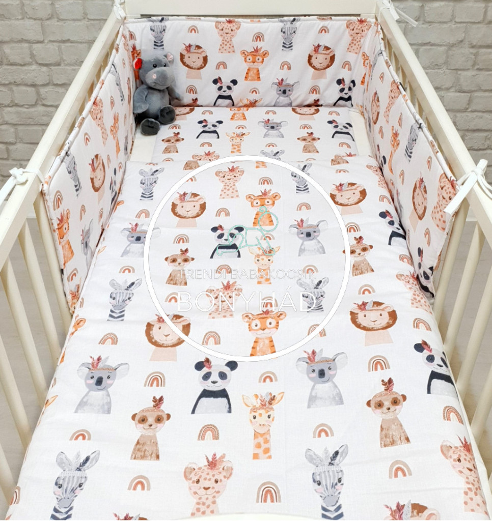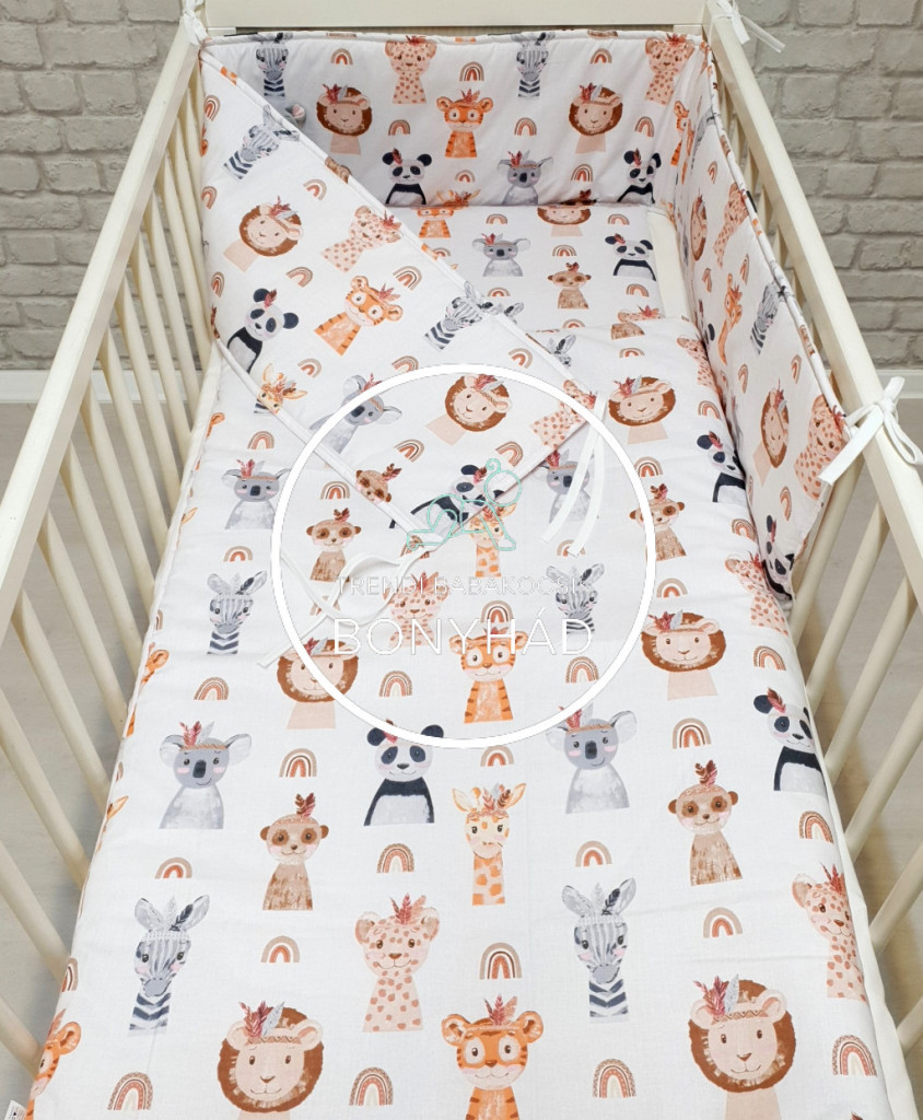A bőrbarát, 100% pamut huzat és az anti-allergén, légáteresztő poliészter töltet gondoskodik arról, hogy a baba bőre mindig kímélt és friss maradjon. A fejvédő körbeöleli a kiságyat, megóvva a babát a rácsok okozta ütődésektől, így a fekhely igazi biztonságos, bújós fészekké válik. ????