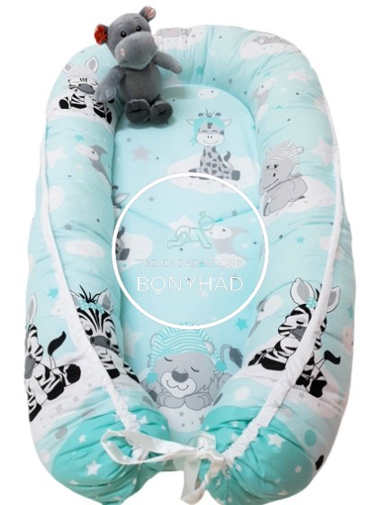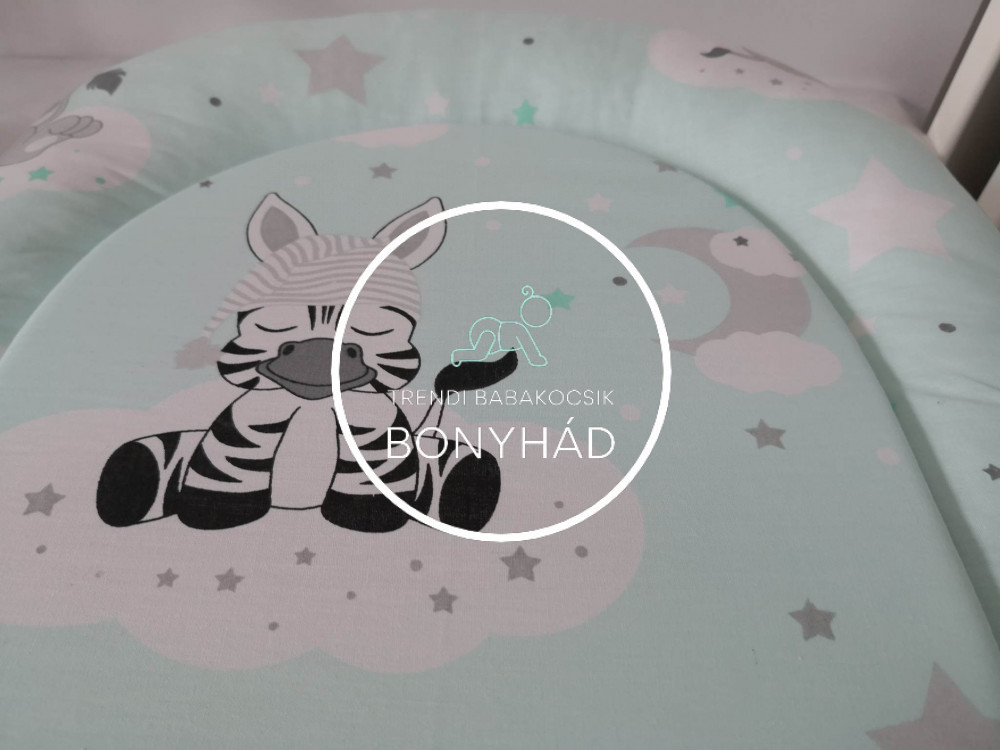 Mintás, anti-allergén műszál golyóval töltött babafészek, szivacs betéttel:
