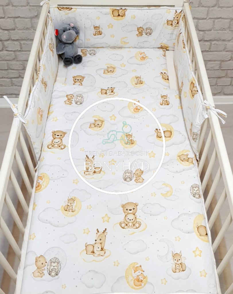 A 3 részes babaágynemű szett mindent tartalmaz, amire kisbabád nyugodt, kényelmes alvásához szükség van: