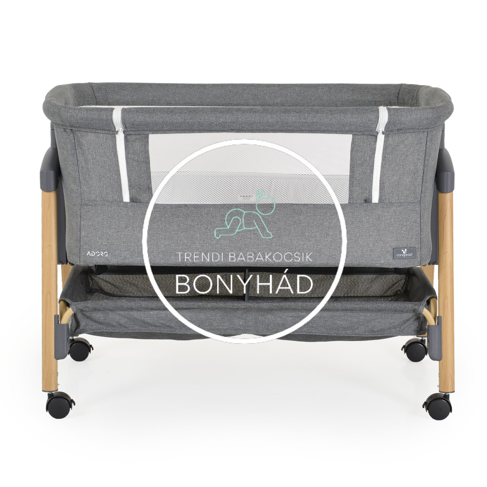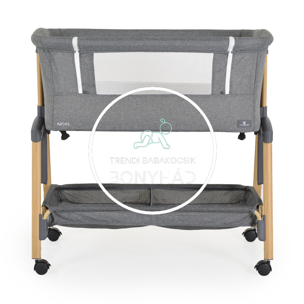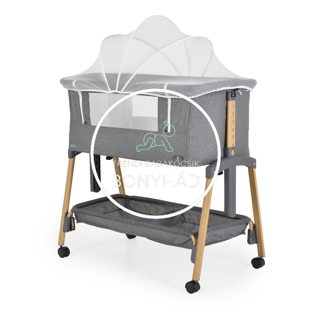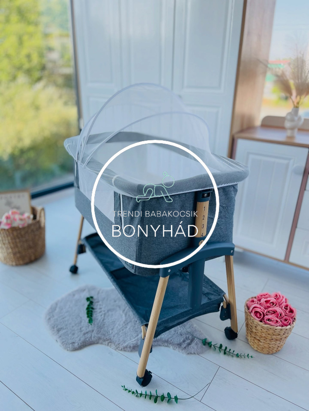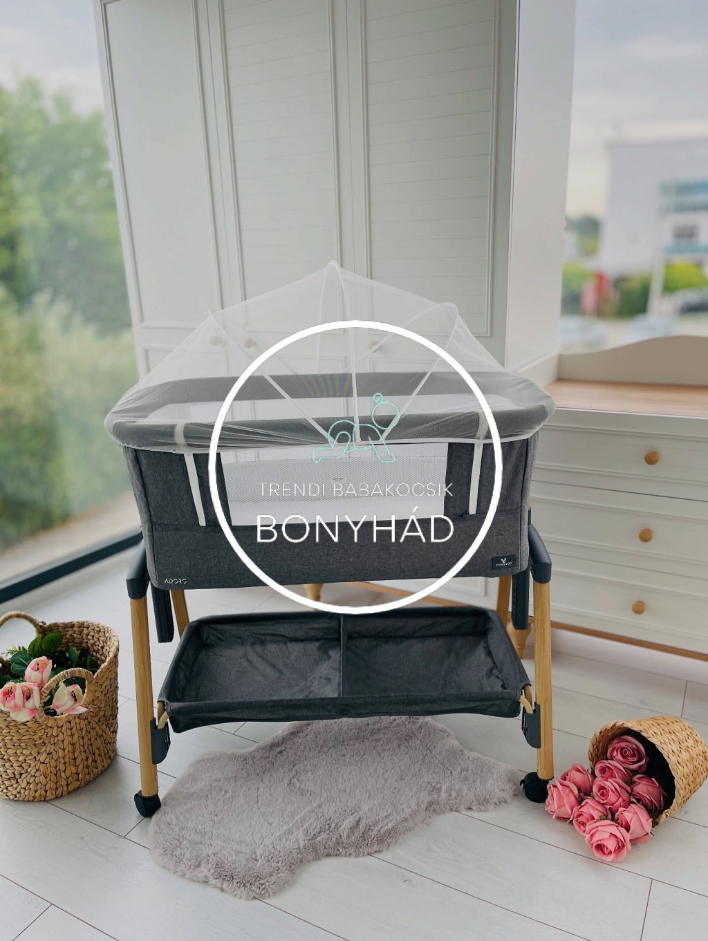 Az Adoro Babaöböl – szúnyoghálóval, 7 pozícióban állítható magassággal, kerekekkel, tárolóval – Szürke a tökéletes választás az újszülött első hónapjaiban, biztosítva a baba kényelmét, a szülők praktikusságát és a modern dizájnt egyetlen multifunkciós babaágyban.