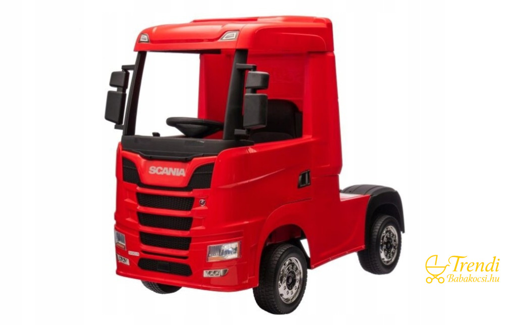 A Scania 4x4 elektromos kamion piros színben egy igazán különleges, látványos és nagy méretű gyermek jármű, amelyet azoknak a gyerekeknek készítettek, akik nem egyszerű autót, hanem kamiont szeretnének vezetni.