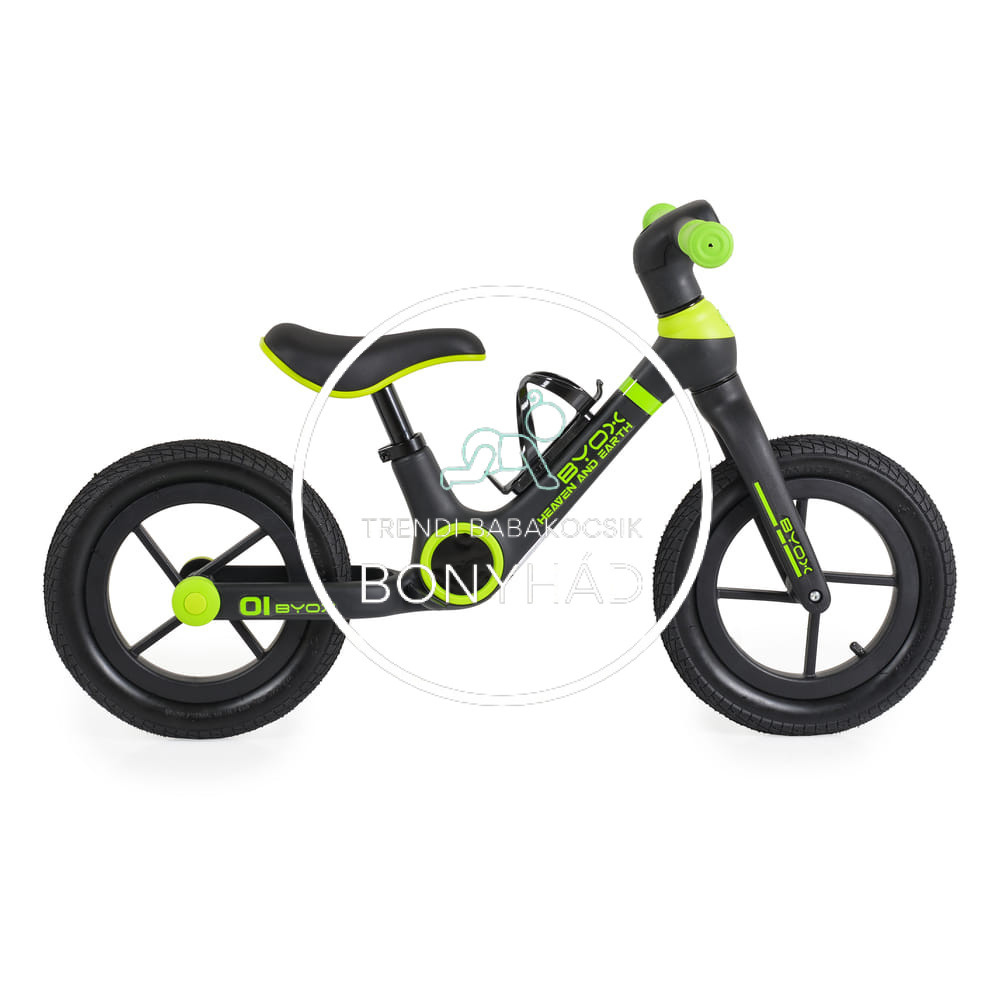 A 12 colos levegős gumiabroncsok PP felnikkel sima gördülést és jó tapadást biztosítanak bármilyen terepen – aszfalton, füvön vagy parkban. A praktikus kulacstartó pedig lehetővé teszi, hogy a gyerek bármikor kortyolhasson egyet játék közben.