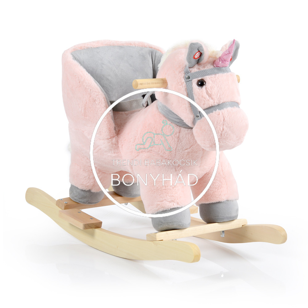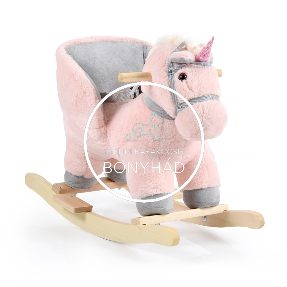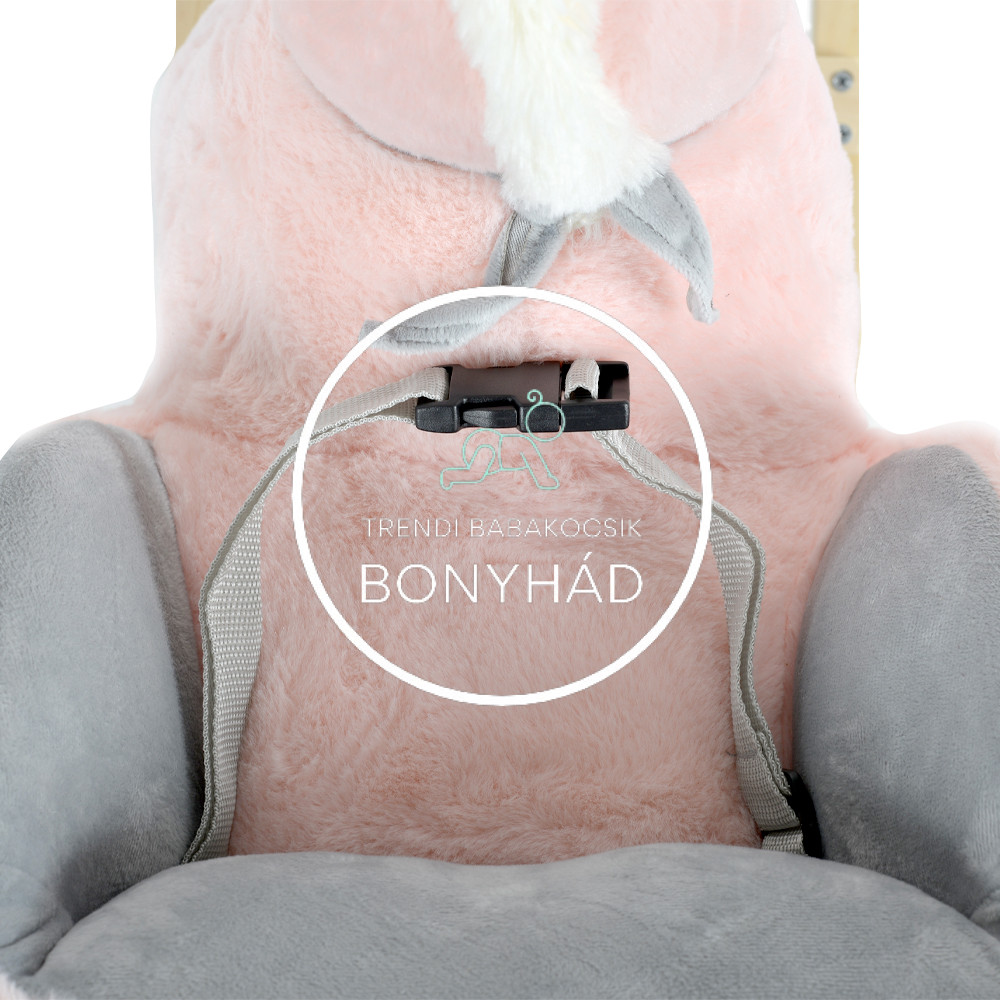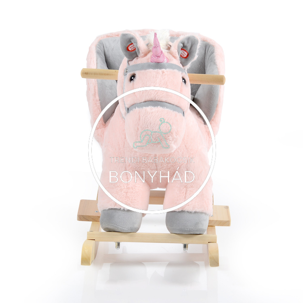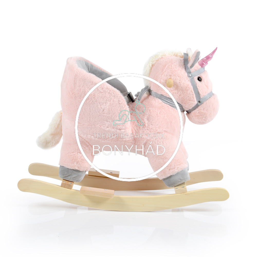 A rózsaszín plüss unikornis puha, ölelhető anyagból készült, így hintázás közben is kényelmes és biztonságos. A fából készült, stabil alap biztosítja a hintázás biztonságát, miközben a kicsik fejlesztik egyensúlyérzéküket, koordinációjukat és motorikus képességeiket.