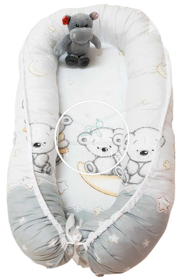 Holdon ülő Macik - Szürke - Babafészek