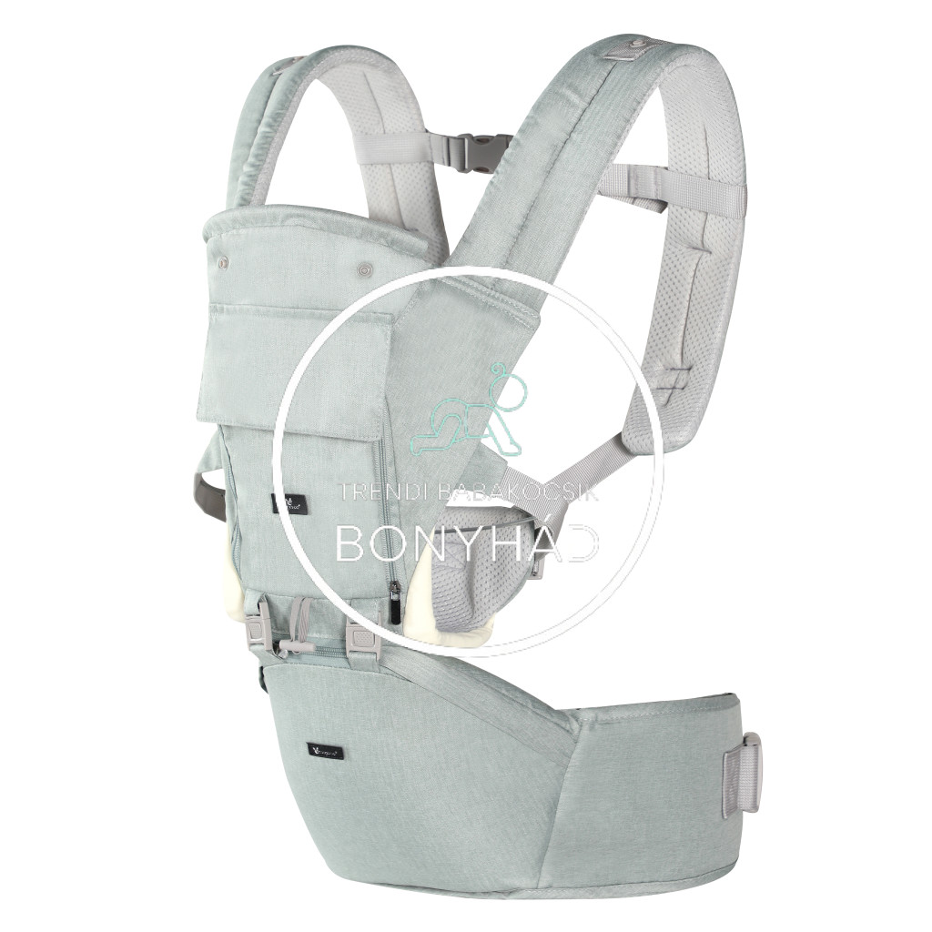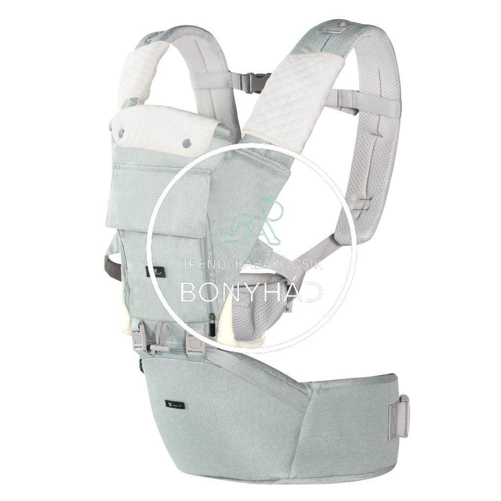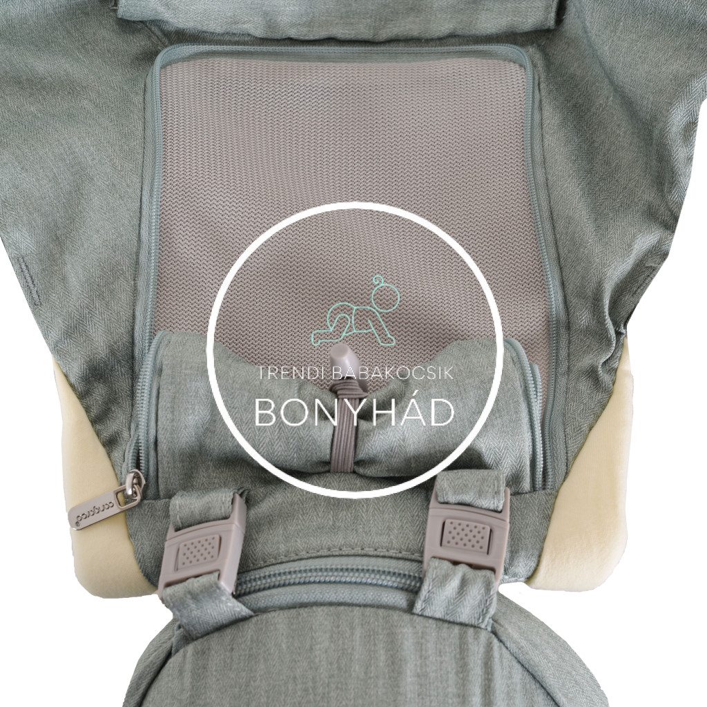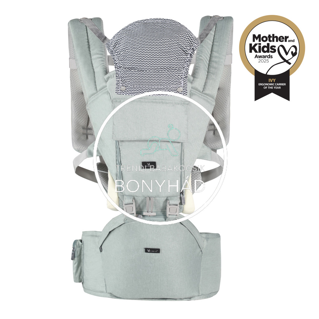Az IVY bébi hordozó zöld változata lehetővé teszi, hogy a baba a legkényelmesebb és legbiztonságosabb pozícióban legyen: