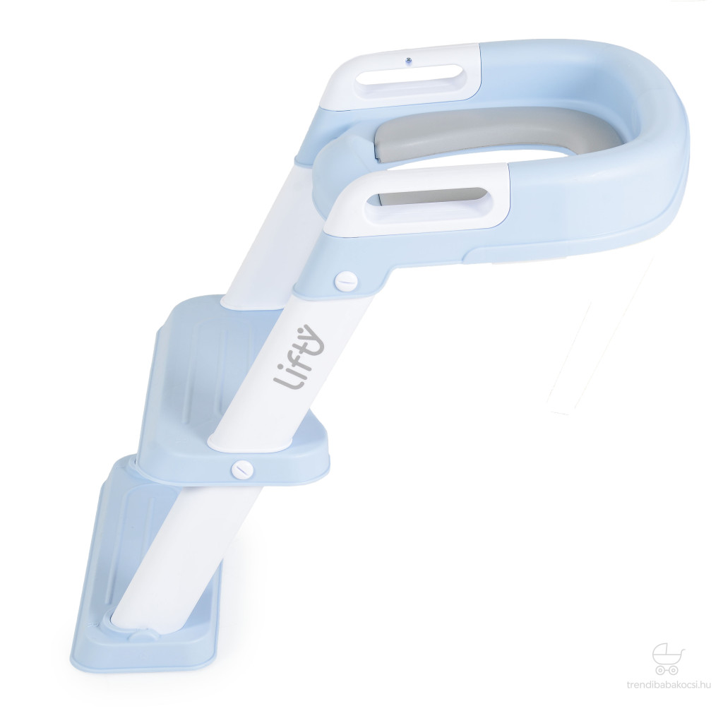 LIFTY lépcsős WC szűkítő kapaszkodóval, kék színben. Puha PU ülés, stabil kapaszkodók, széles csúszásmentes talp, biztonságos rögzítés és összecsukható kialakítás. 12 hónapos kortól, 35 kg-ig.