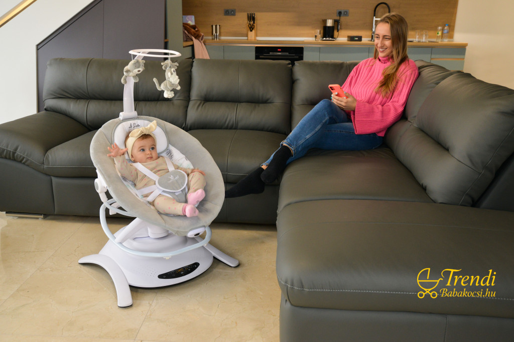 A La Scala multifunkciós babahinta tökéletes segítség a mindennapokban, amikor szeretnéd a babát megnyugtatni, elringatni vagy lefoglalni – miközben te el tudsz végezni pár fontos feladatot.