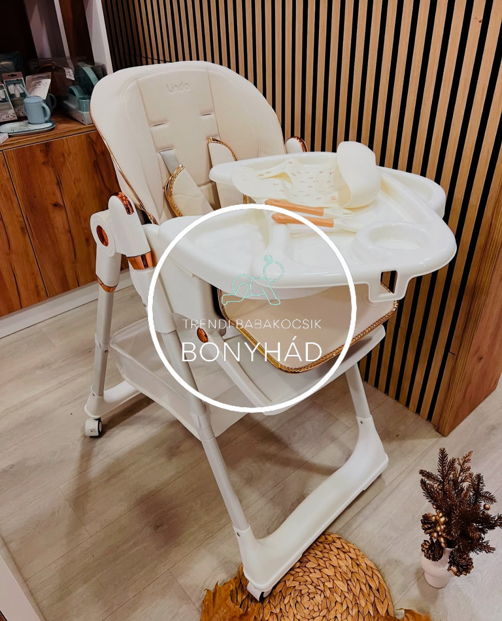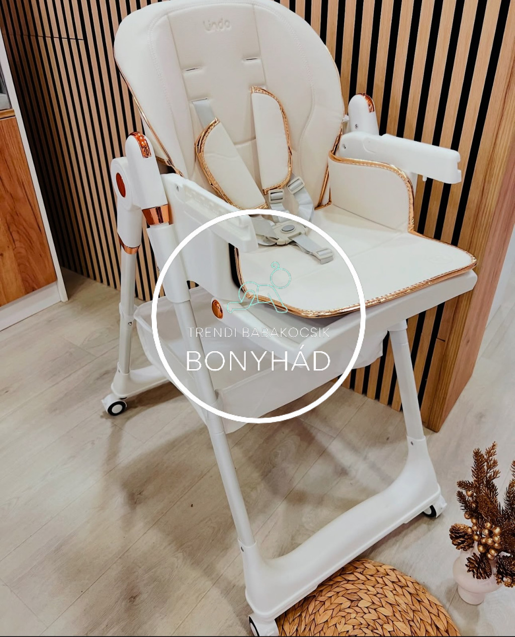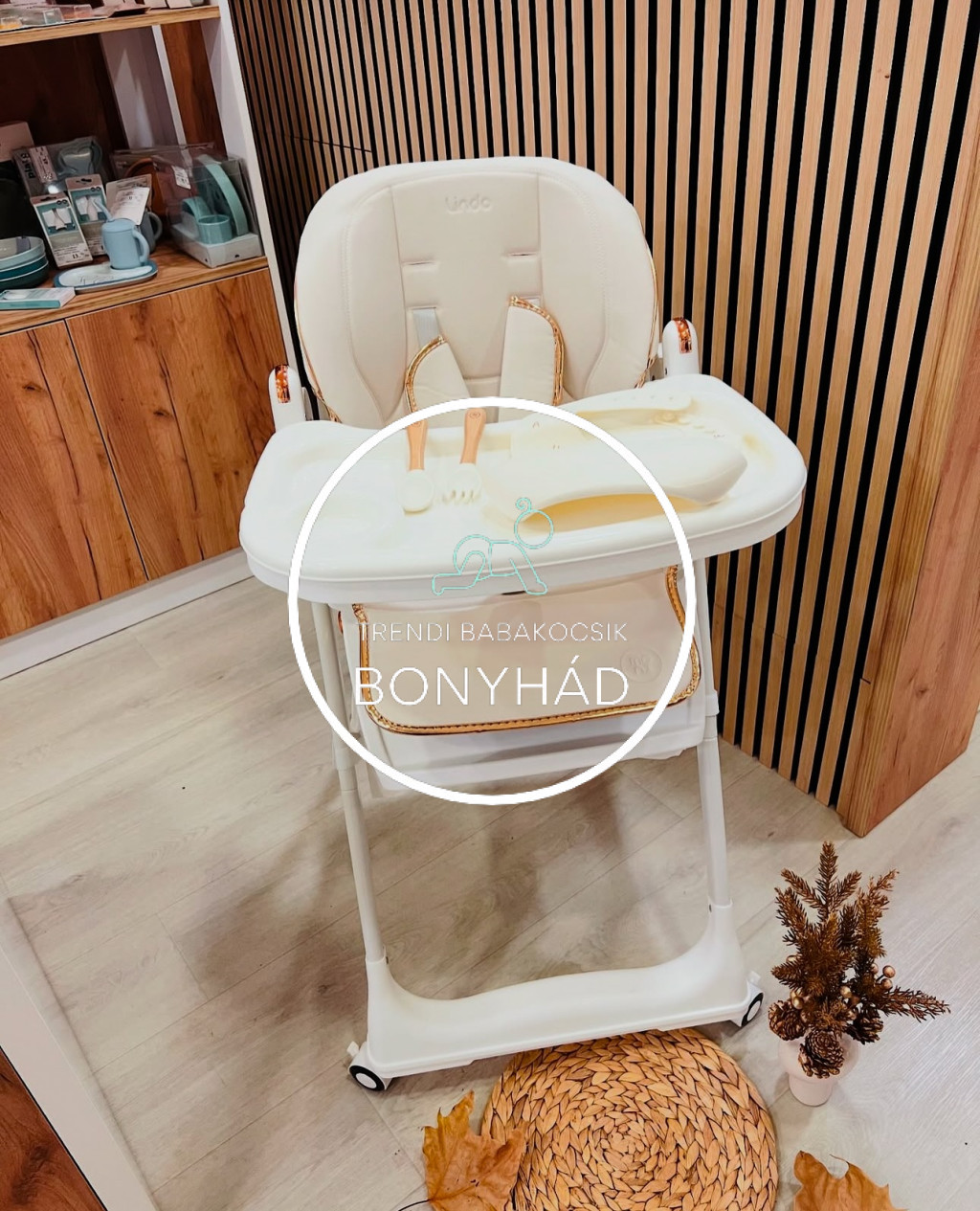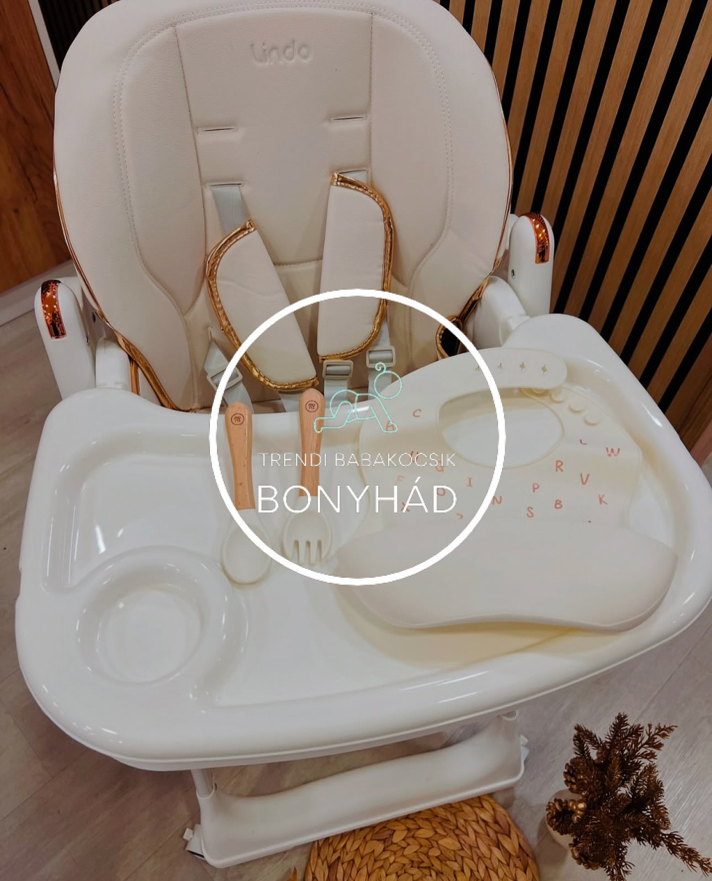 Lindo - Multifunkciós Etetőszék - Ajándék kiegészítőkkel (előke, kanál, villa) - Fehér