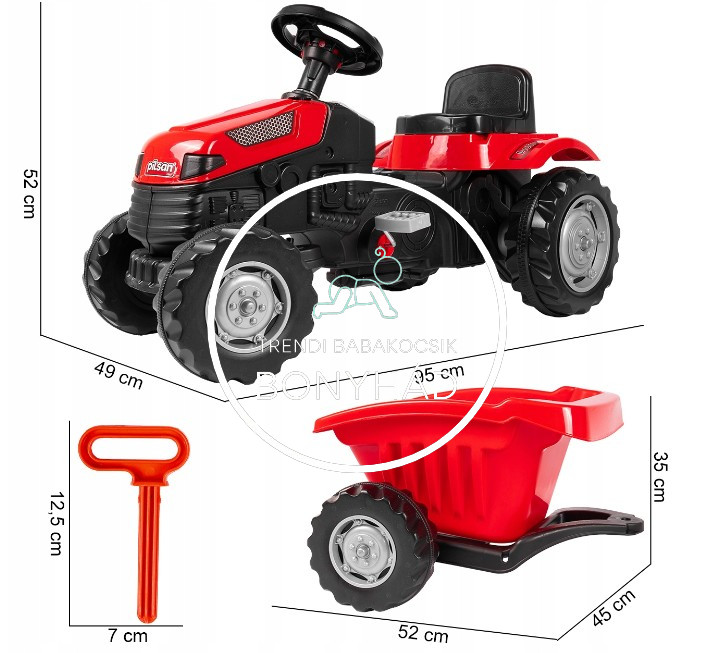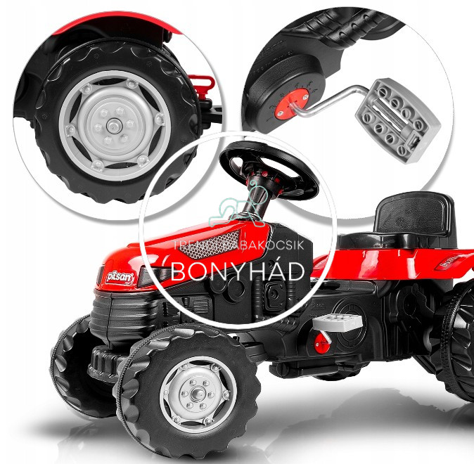 A Pilsan pedálos traktor trélerrel tökéletes választás minden kis traktorrajongónak! Ez a masszív, pedállal hajtható jármű nemcsak szórakoztató, hanem fejleszti a gyermek mozgáskoordinációját és izomerősítő hatású is.
