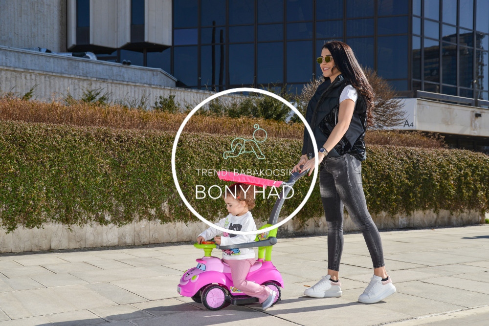 Smile tolókaros bébitaxi - Levehető napvédővel - Rózsaszín