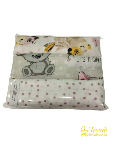 Három különböző mintájú, 140 g/m2 anyag vastagságú textilpelenka. Napjainkban legtöbbször már nem pelenkázásra hasznos, hanem puha anyagának a mindennapi, babával kapcsolatos teendők kisegítőjévé vált. Vékony takaróként, törlőkendőként (büfiztetésnél), törölközőként, babakocsi árnyékolóként tökéletesen megállja a helyét. Ha már a kisbabának nincs szüksége rá, akkor használható akár ablak, autó és szemüveg tisztításra is, mivel anyaga nem szöszöl.