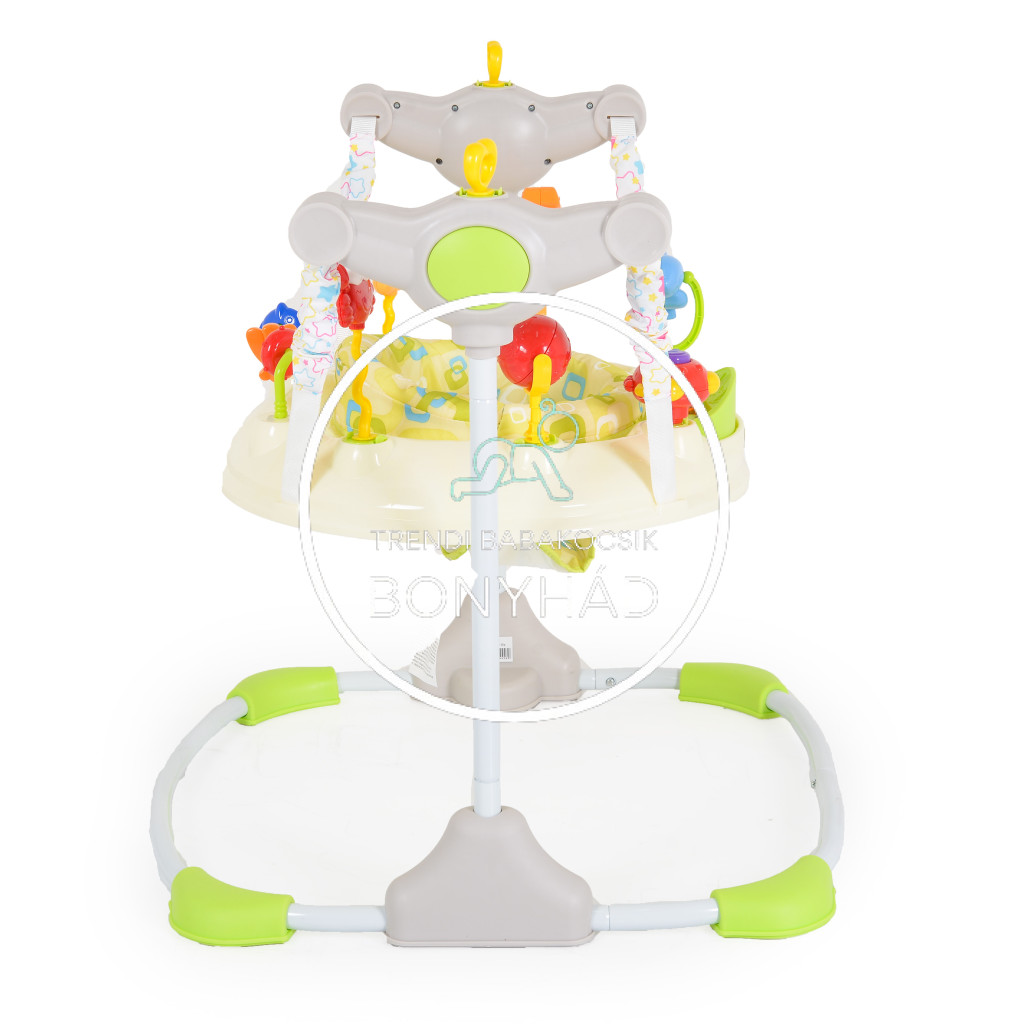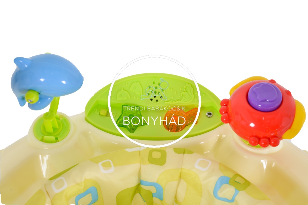 Ez az interaktív fejlesztő játszóközpont a bungee funkciót ötvözi a zenélő és fényjátékos aktivitásokkal, támogatva a baba fizikai, érzékszervi és kognitív fejlődését.