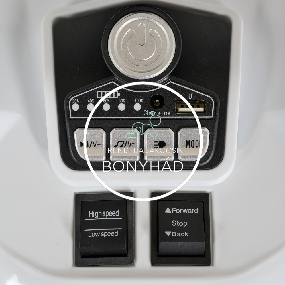 Két sebessége és egy előre/hátra kapcsolója van a nagyobb kényelem érdekében - működés közben.