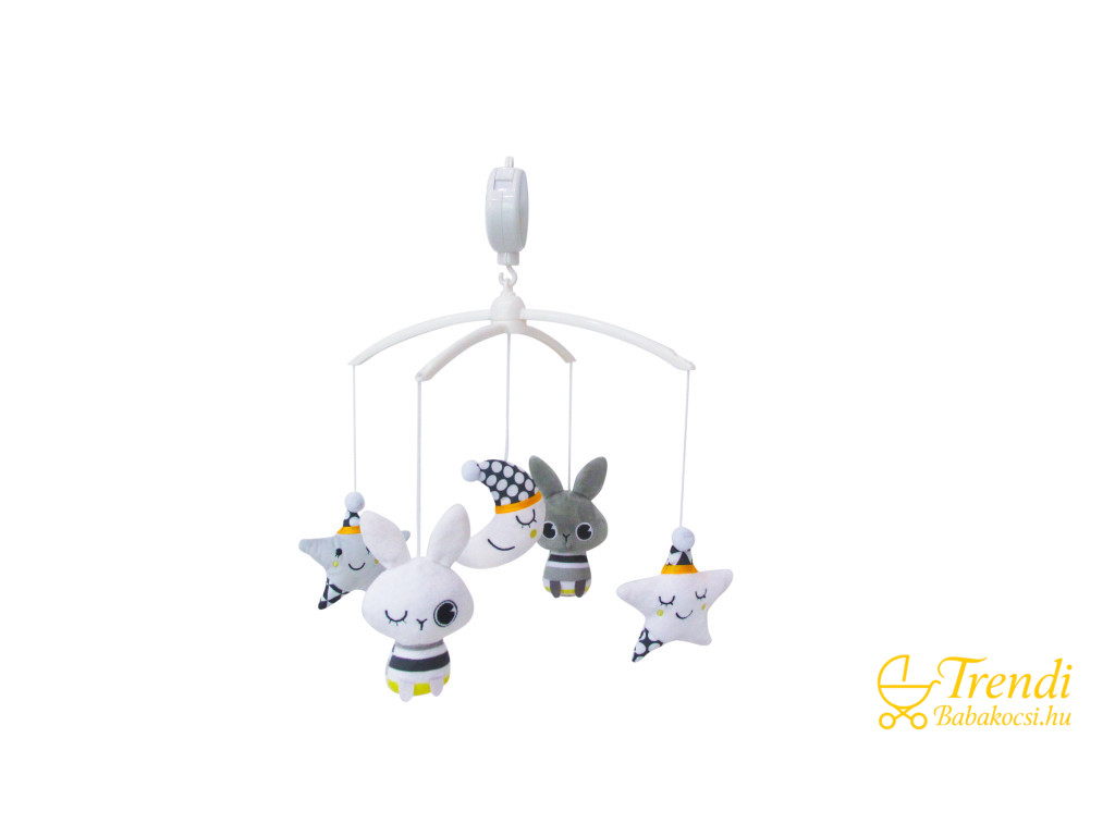 A zenélő forgó kellemes, nyugtató dallamokat játszik, miközben a plüss figurák lassan forognak a baba felett. Ez a kombináció segít:
