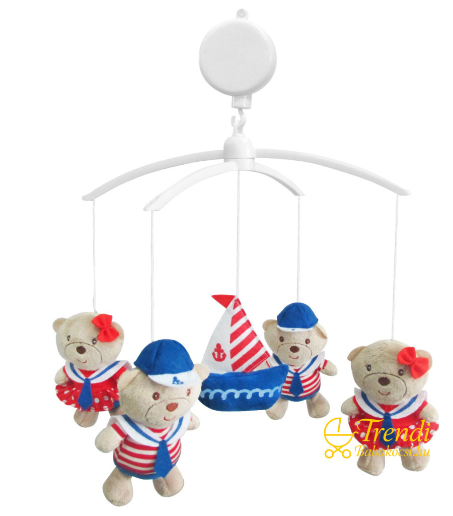 A zenélő forgó kellemes, nyugtató dallamokat játszik, miközben a plüss figurák lassan forognak a baba felett. Ez a kombináció segít: