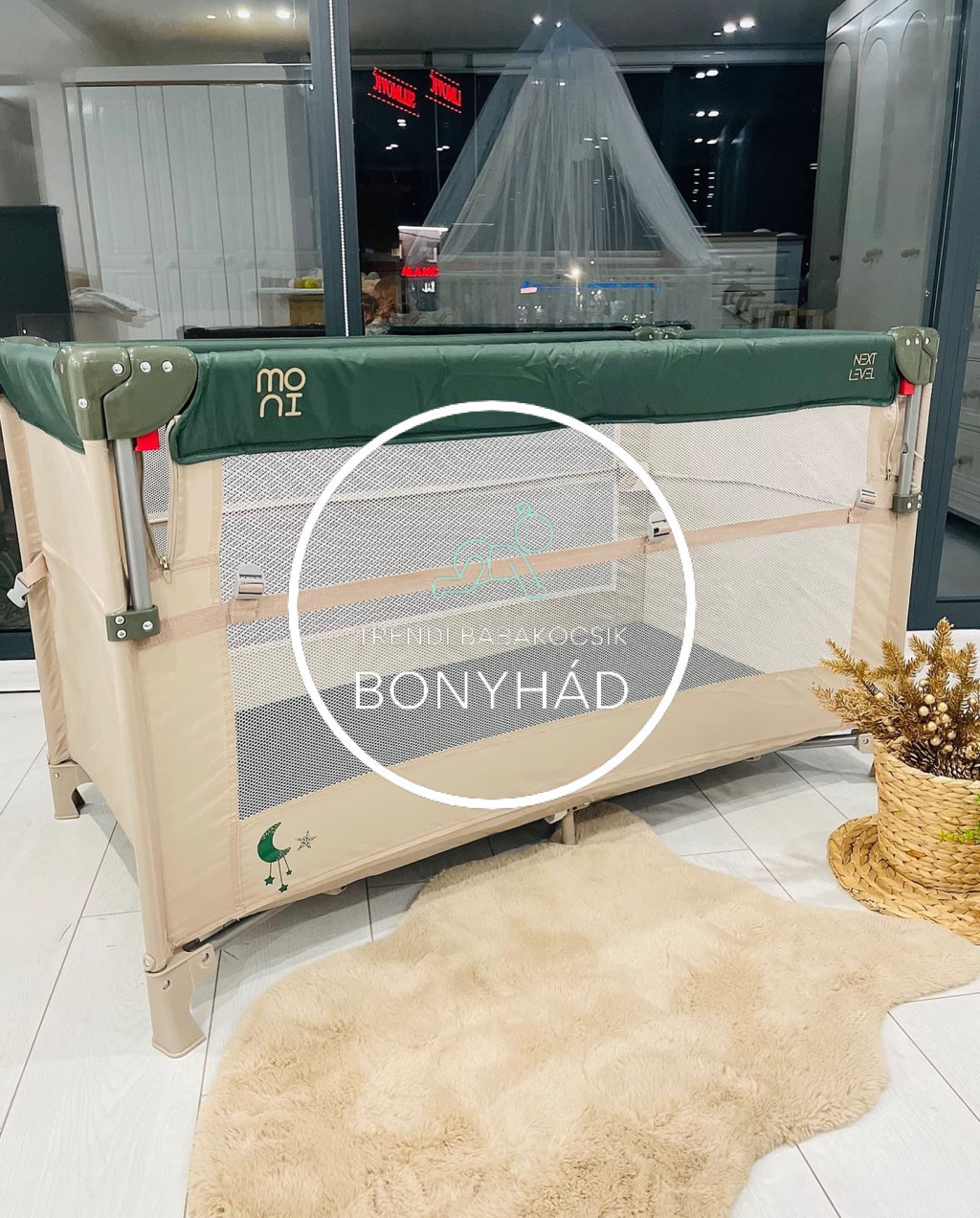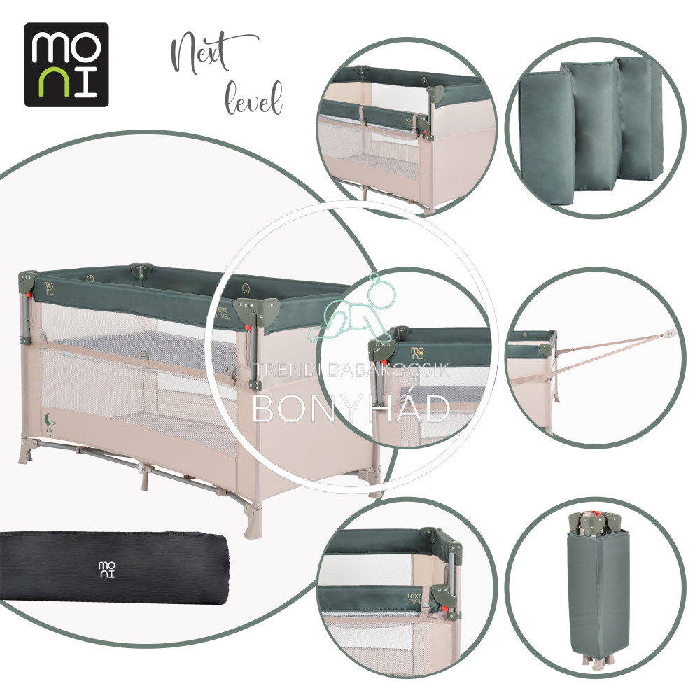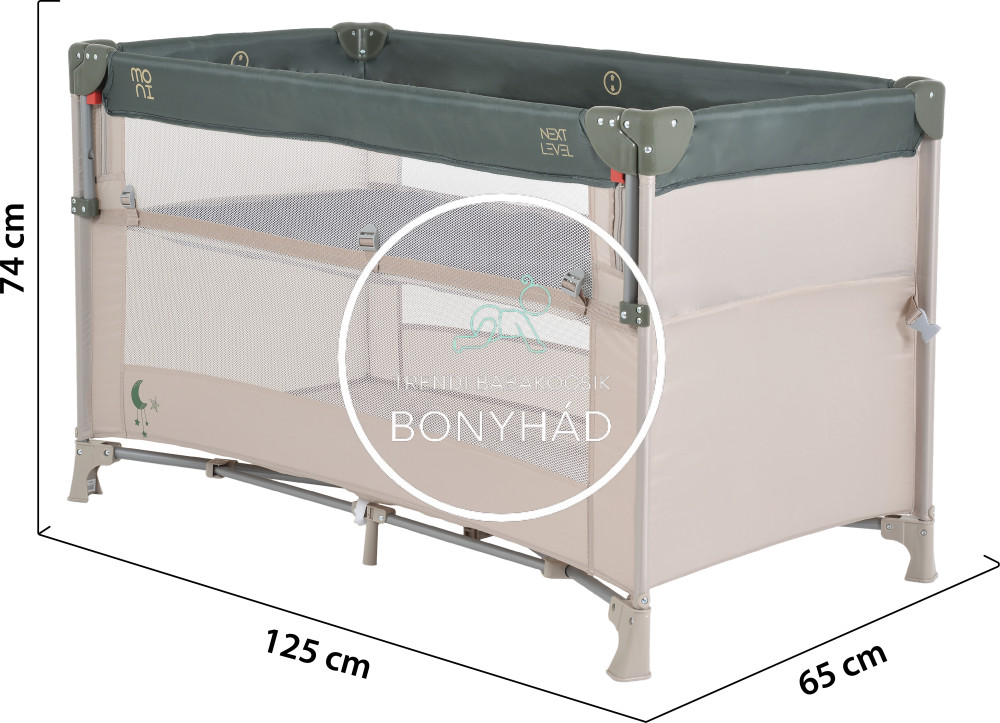 Next Level - Utazóágy - 2 szintes, lehajtható oldalfallal - Zöld