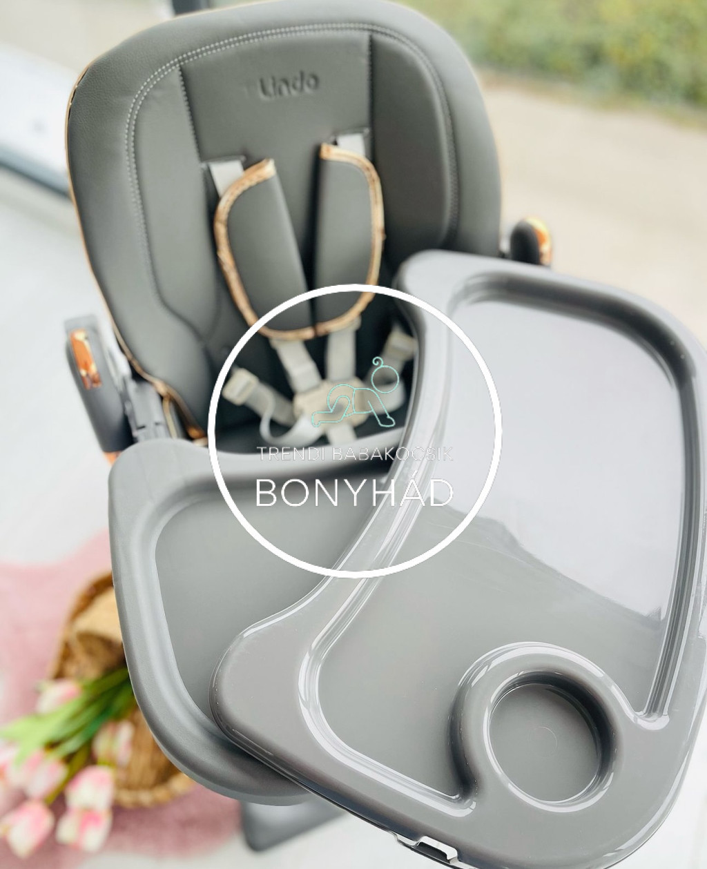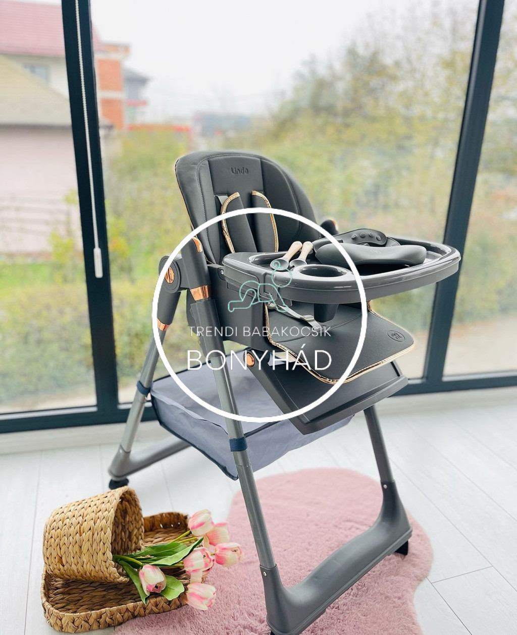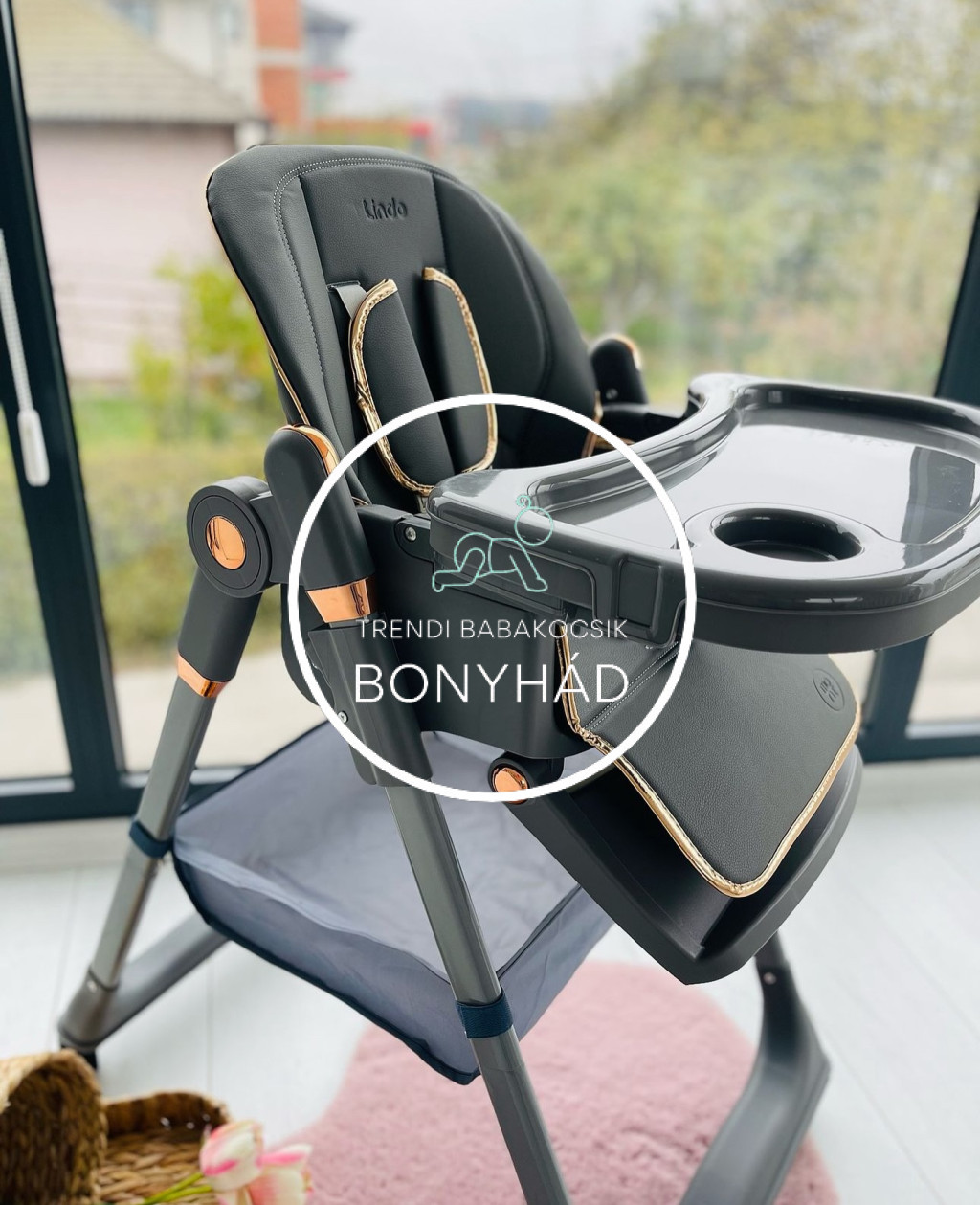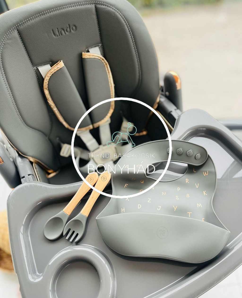 Lindo - Multifunkciós Etetőszék - Ajándék kiegészítőkkel (előke, kanál, villa) - Szürke