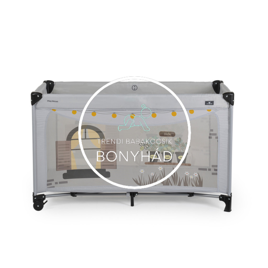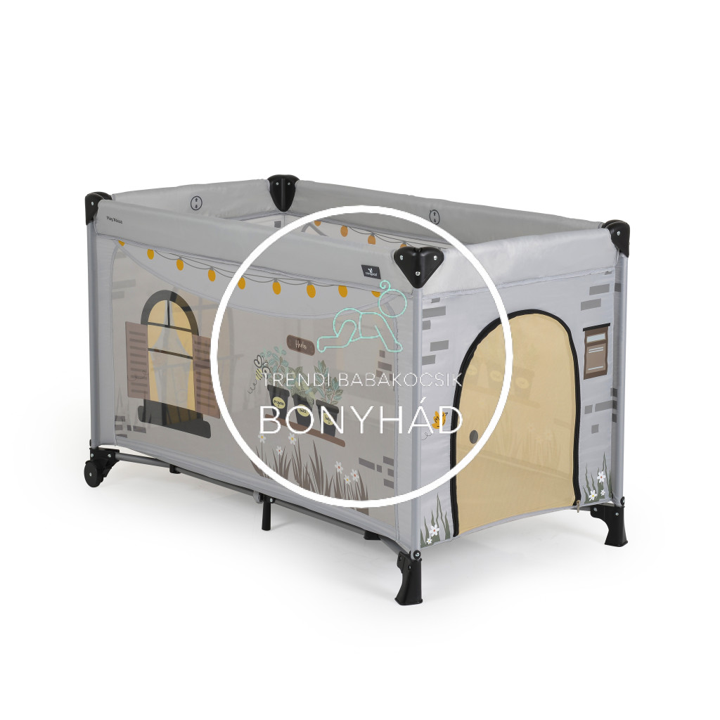 PLAYHOUSE összecsukható házikó utazóágy – szürke