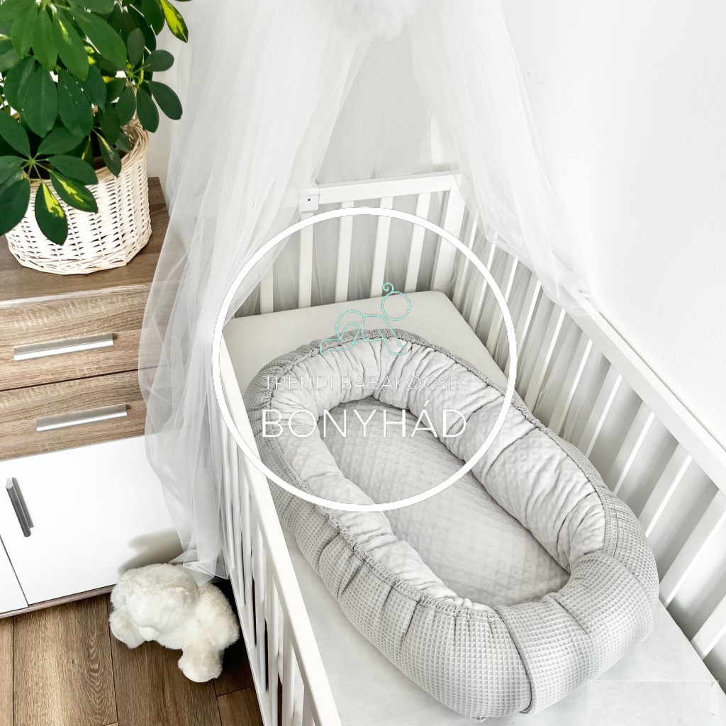 A szürke színvilág időtálló, uniszex és bármely babaszobába harmonikusan illeszkedik – legyen szó modern, skandináv vagy épp klasszikus hangulatról. A fészek körkörös pereme védelmet nyújt az akaratlan mozdulatok ellen, így segíti a baba nyugodt alvását.